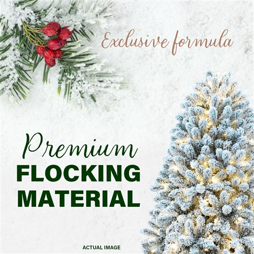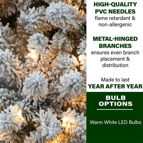 Fraser Hill Farm 9′ Winter Snow Pine Flocked Christmas Tree with White LED Lights Features: