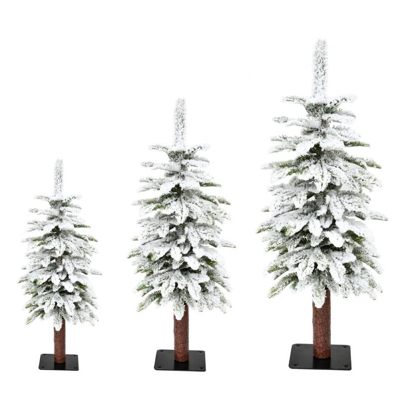 - Set of 3 Snowy Downswept artificial Christmas trees.