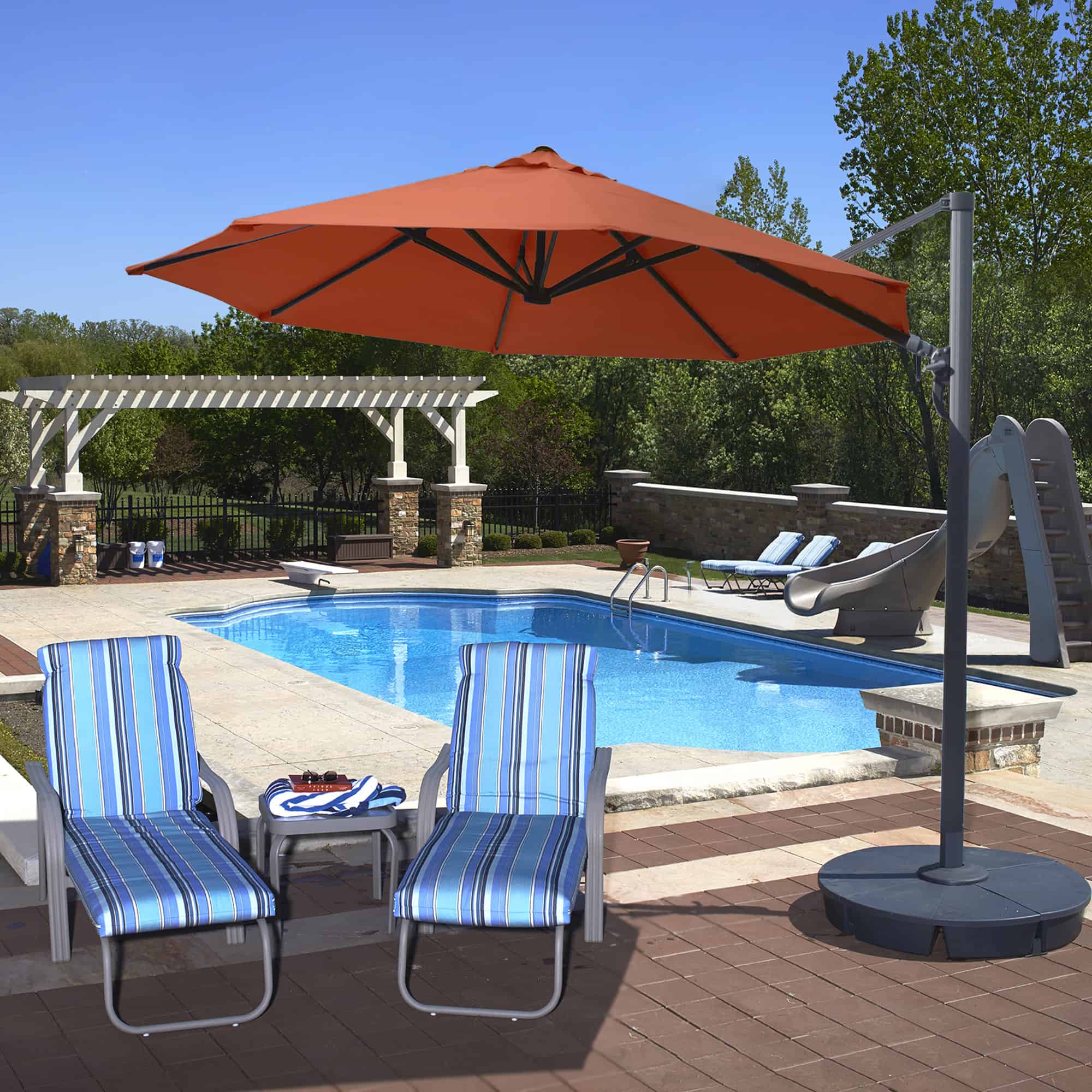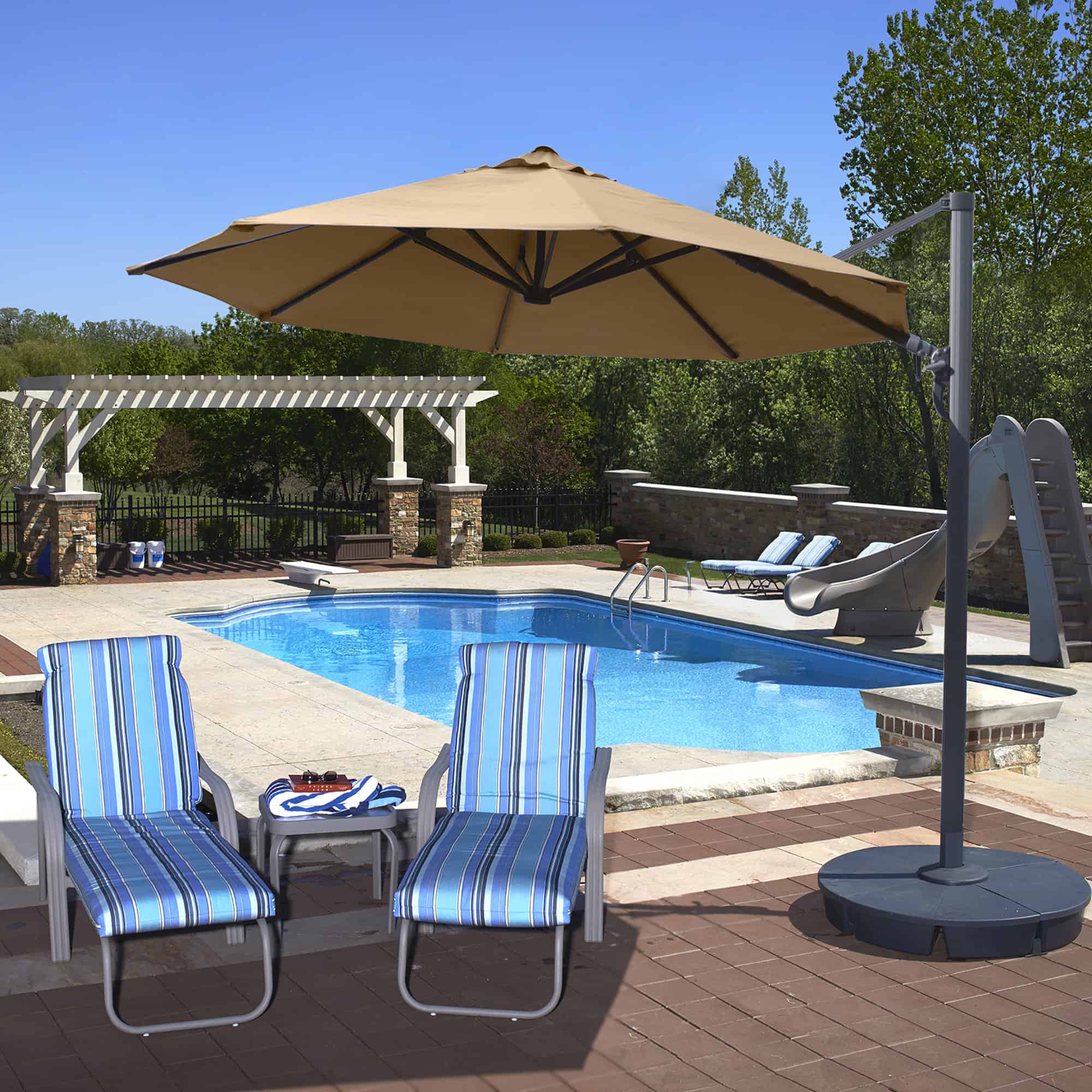 Have questions about the Freeport 11-ft Octagonal Cantilever Patio Umbrella in Sunbrella Acrylic, please give us a call! Pool Warehouse, Americas #1 source for inground pool kits, inground swimming pool liners, above ground pool liners, above ground pool kits and Hot Tub Spas since 1998.