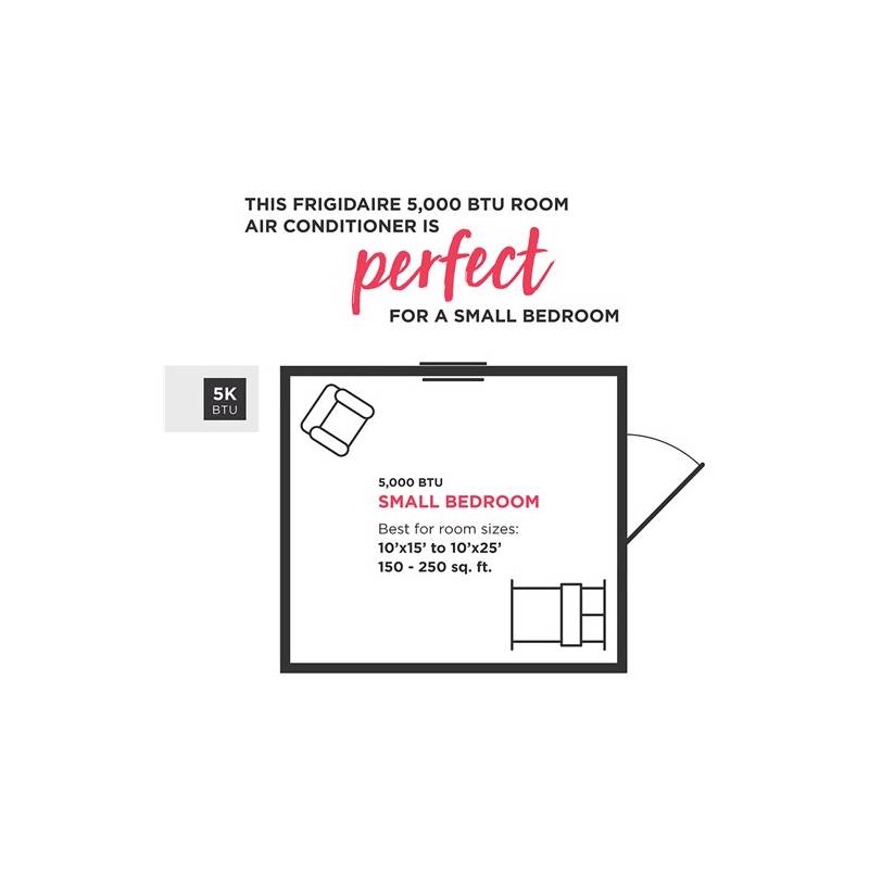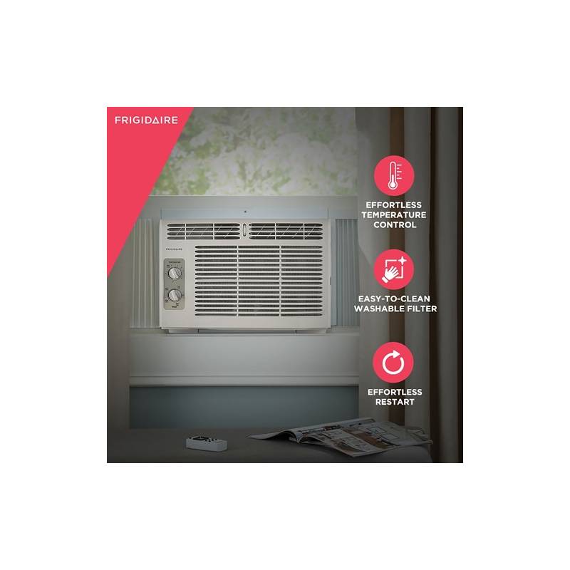 On hot, humid days, Frigidaire’s 5,000 BTU window-mounted air conditioner quickly cools a room up to 150 square feet. This mini-compact unit features mechanical rotary controls and top, full-width, 2-way air direction control. The washable filter with side, slide-out access captures dust from the air to keep your air conditioner working efficiently. After a power outage, Effortless Restart automatically resumes operating at its previous settings once power is restored. Plus, low power start-up conserves energy and saves you money. Year after year, Frigidaire is the brand you can trust to keep you cool and comfortable.