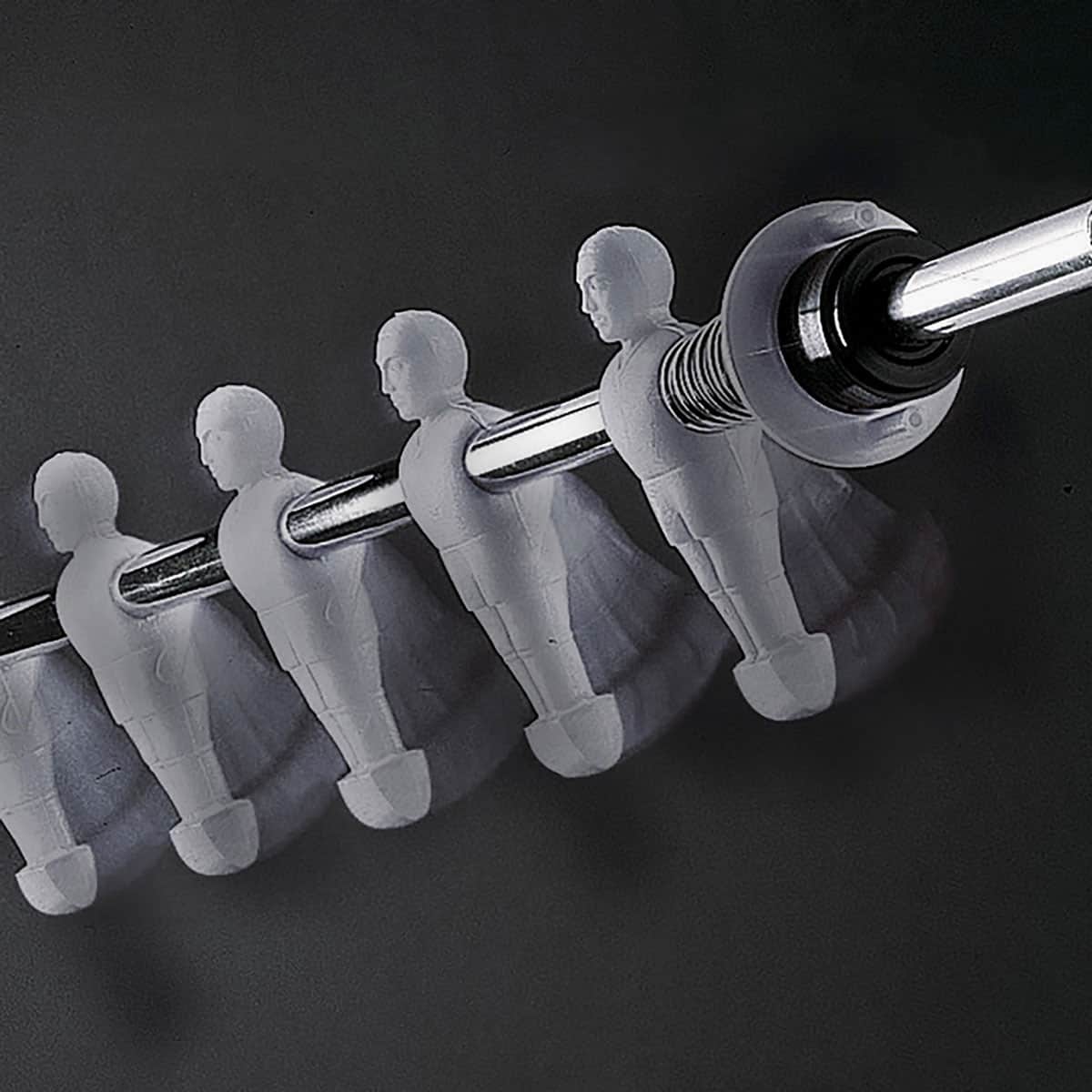 - Unbreakable plastic players are molded to the bars