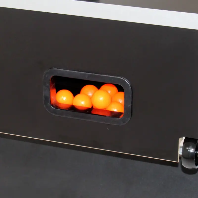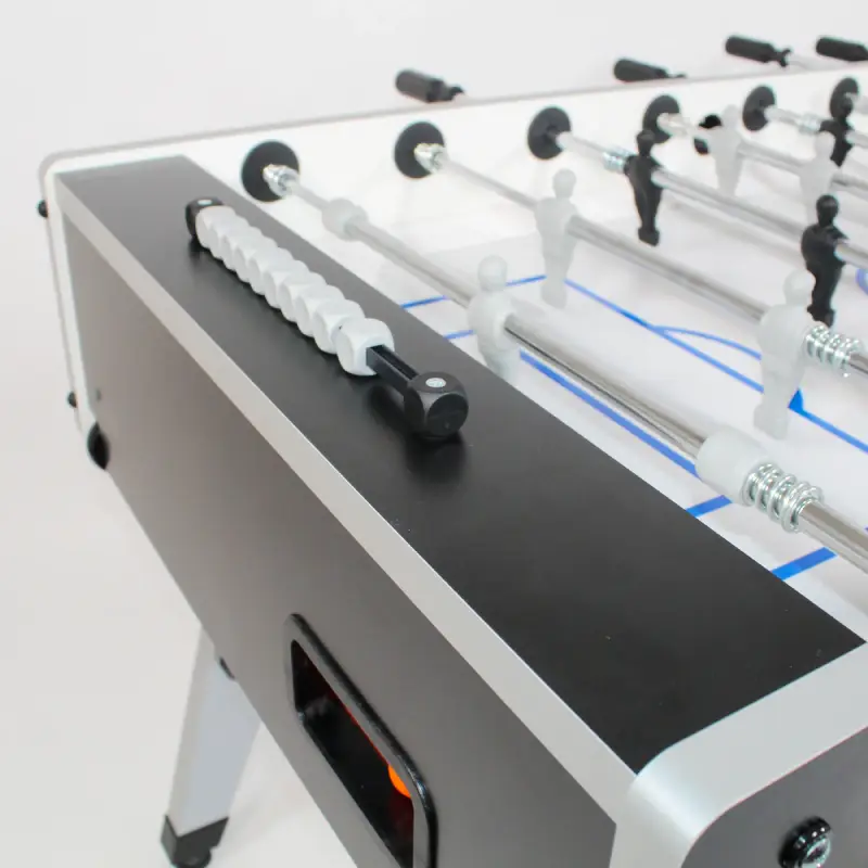 Ergonomic handles enhance control for competitive play, while the nylon-insert bearings reduce friction, helping players maintain precision even during high-speed rallies. Die-cast aluminum players are permanently molded to the rods for maximum durability and realistic ball control, staying true to Garlando’s professional standard. The raised playfield corners keep the ball in motion for continuous gameplay, and abacus-style scorers mounted at each goal maintain a classic look with intuitive functionality. A built-in ball return system and ten high-density resin balls are included, ensuring play begins right out of the box.