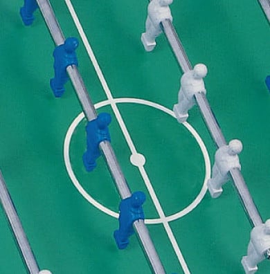 The Garlando Open Air Outdoor Foosball Table lets you bring the fast action of foosball anywhere. This weatherproof professional foosball table has folding legs so you can easily move it or store it. Made with special weather resistant materials, this table is suitable for outdoor use all year round. The 3/4-inch thick cabinet and legs are constructed using an innovative compound of hi-tech plastic materials that are reinforced with fiberglass to withstand bad weather and provide outstanding sturdiness. Leg panels were designed to reduce weight without compromising stability. Telescopic rods are made of 2/3″ diameter high resistance steel and coated with triple anti-rust chromium-plating. Anti-rust stainless steel roller bearings greatly improve game speed while reducing wrist stress. The playfield is made of water-resistant plastic laminate with white lines silkscreened on a green background using special inks that withstand humidity and will not fade under the sun. The ivory and blue players are made of unbreakable plastic and molded to the bars. All bolts, nuts, and screws are given an anti-rust treatment to ensure durability and great looks for years. Ball returns behind each goal provide quick and easy ball recovery so you can keep the action going. Includes 10 white standard balls. High speed action of foosball can now be played outdoors with the Garlando Open Air Outdoor Foosball Table!
