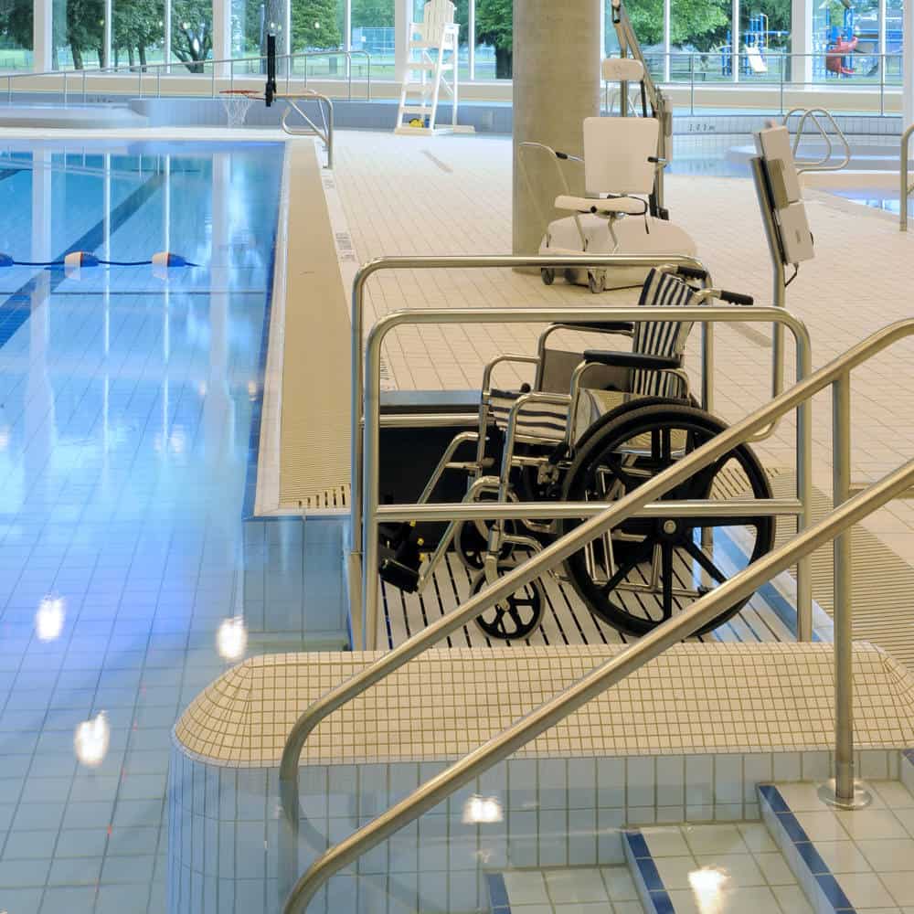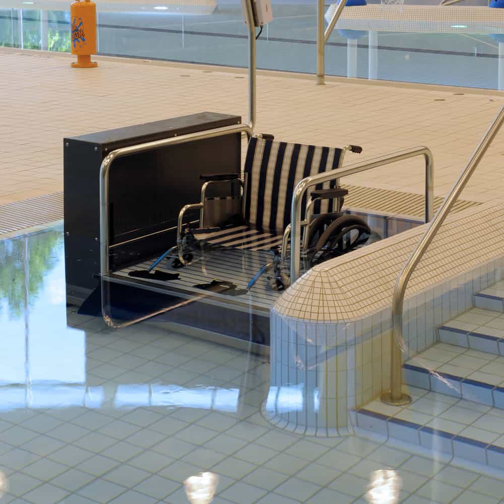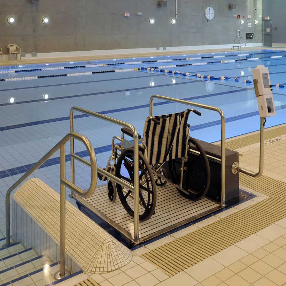 The Glacier Water Powered Platform Lift is designed to allow safe and dignified pool entry and exit without compromising aesthetics. This lift is a true advancement over other systems on the market providing the same ease-of-entry as a ramp while only occupying a fraction of the space. This aesthetically-pleasing design is built into the pool and meant to last for the pool’s entire lifetime, providing an investment for the future of your pool and making it easily accessible for years and years to come.