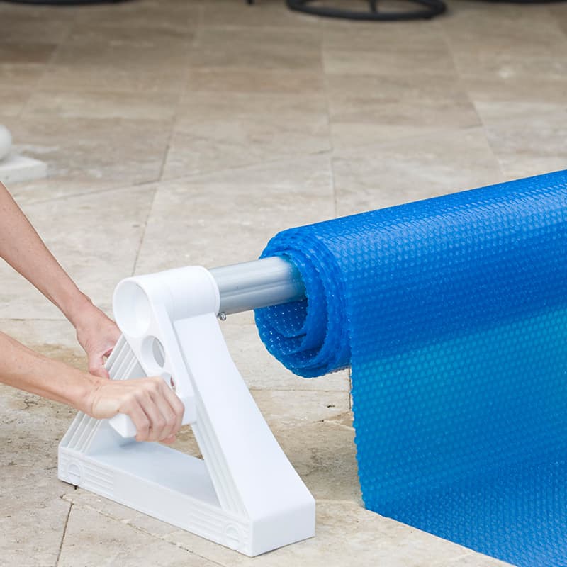 The GLI Cyclone Inground Solar Blanket Storage System allows your entire solar cover to be rolled on and off in seconds by one person. Your solar blanket is attached easily on this lightweight, portable system that is easily rolled away for convenient storage. Eliminate the hassle of two (or more) person folding! Your solar cover should not be without one. For off-season storage of Solar Blanket – Install wood screw hooks into fence, wall or even hang from the garage or shed ceiling. Be sure to install hooks into solid wood posts or studs. Roll solar blanket onto the storage system and suspend from hooks using the enclosed storage straps.
