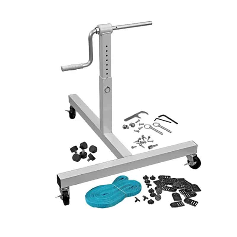 - Powder-coated bases w/3″ metal casters for easy roll-away storage