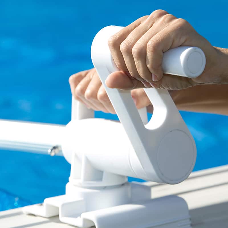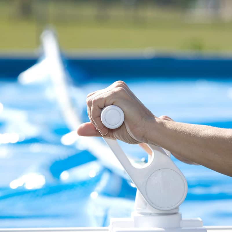 The GLI Tidal Wave Above Ground Solar Blanket Storage System is the easiest reel system you will ever use on your above ground pool! With its easy one-person operation, it operates smoothly and pivots out of the way when the pool is in use. Simply mount it on your top rail and it is ready to use. With the handle grip for easy lifting, you never have to struggle with bulky cover reels again. Made of heavy-duty corrosion-resistant resin and super strong anodized aluminum, the Tidal Wave comes pre-drilled for easy installation. The Tidal Wave also includes all straps and the necessary hardware needed for installation.