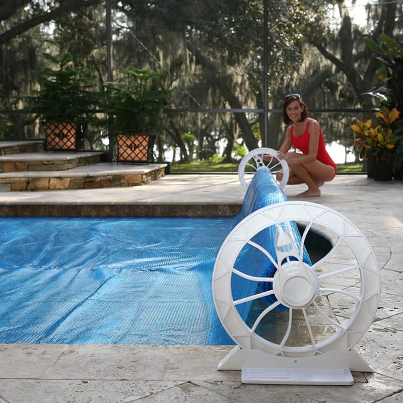 - Fits pool sizes up to 24 ft. x 45 ft.. (Recommend using a 4 in. Solar Blanket Storage System for pools 600 sq. ft. and larger when used with thicker mil solar blankets.)