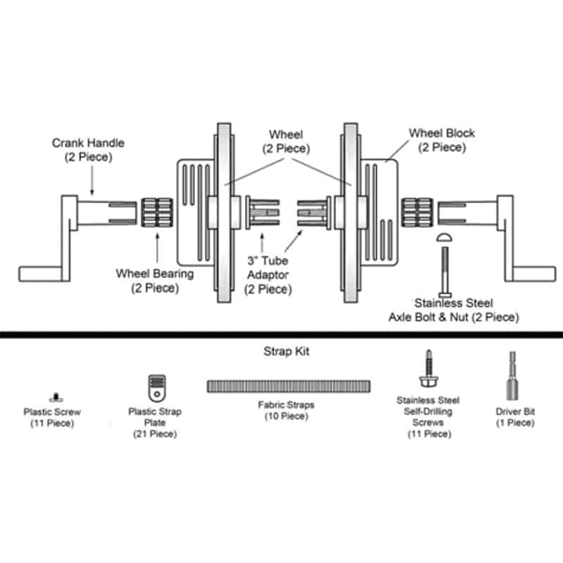 The GLI Typhoon Inground Solar Blanket Storage System allows your entire solar cover to be rolled on and off in seconds by one person. Your solar blanket is attached easily on this lightweight, portable system that is easily rolled away for convenient storage. Eliminate the hassle of two (or more) person folding! Your solar cover should not be without one. For off-season storage of Solar Blanket – Install wood screw hooks into fence, wall or even hang from the garage or shed ceiling. Be sure to install hooks into solid wood posts or studs. Roll solar blanket onto the storage system and suspend from hooks using the enclosed storage straps.