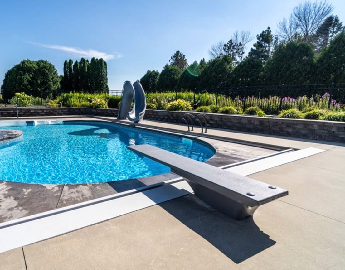 Global Pool Products offers two distinct diving board base configurations to accommodate different pool designs and installation needs: