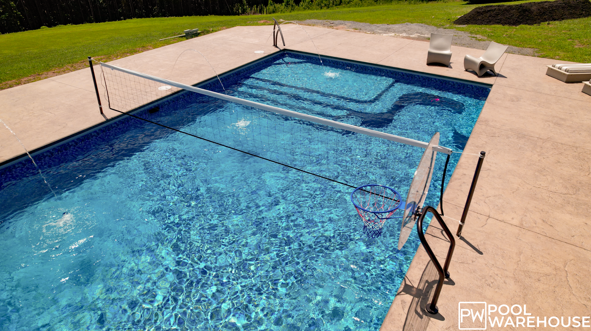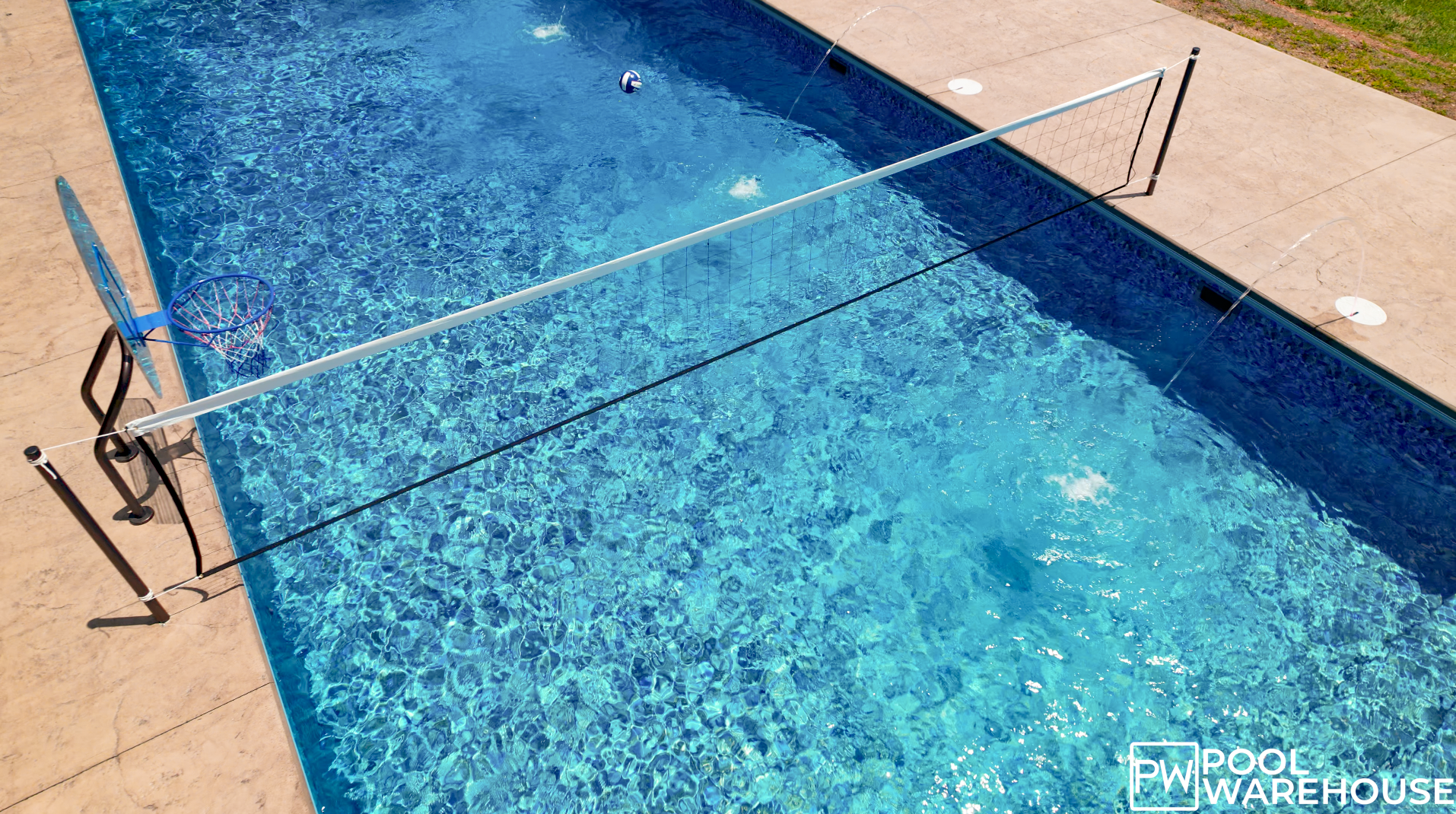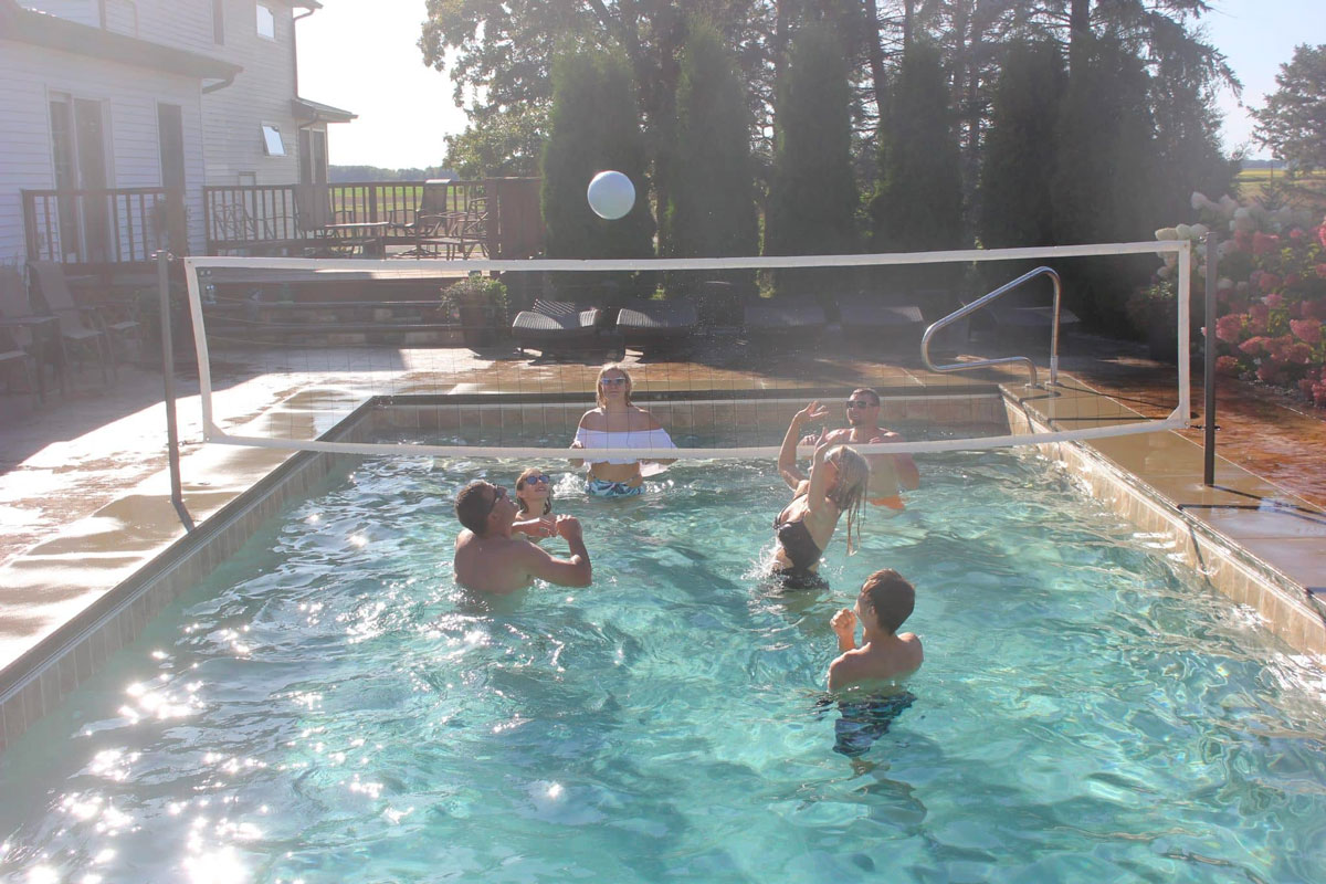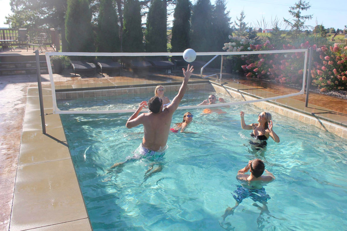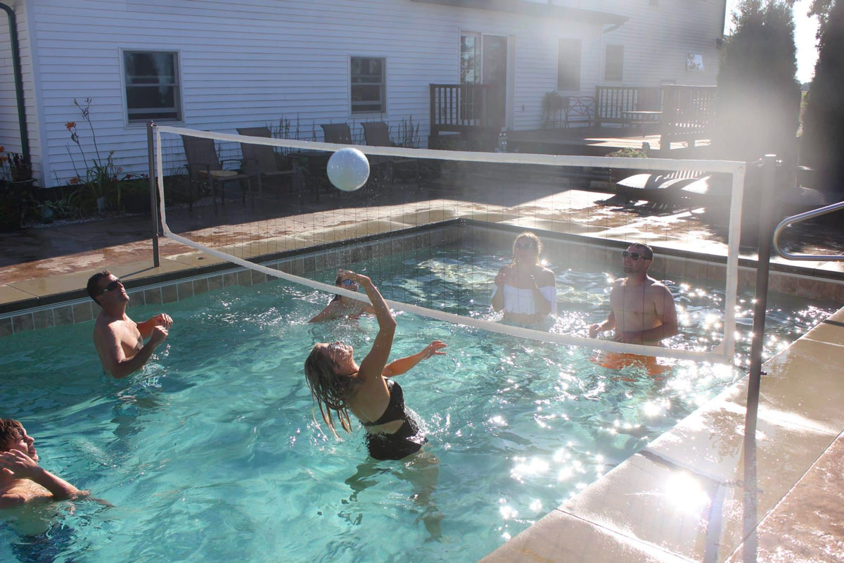 Bump it, Set it, Spike it with the Global Pool Products Volleyball Set from Pool Warehouse. This Volleyball Set provides hours and hours of fun for you, your friends, and your family. Our easy to install design for in ground pools quickly converts your back yard swimming pool into a volleyball court for tons of fun. The net can be set up and removed very easily, allowing you to start up a fun game in a matter of minutes. The poles for this volleyball set are available in two different colors, Copper Vein and Silver Vein. Its durable powder coat construction makes it even salt water pool friendly. This fun Over the Edge product can be easily removed for storage when not in use.