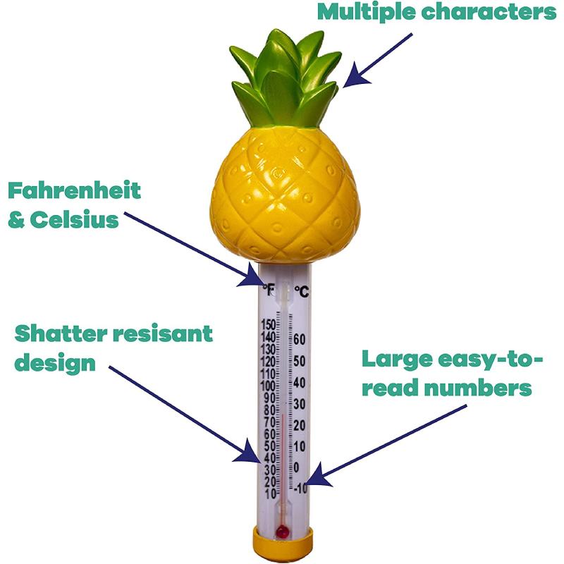 - The Game Pineapple spa and pool thermometer is a durable and easy-to-read pool thermometer designed as a fun pineapple.