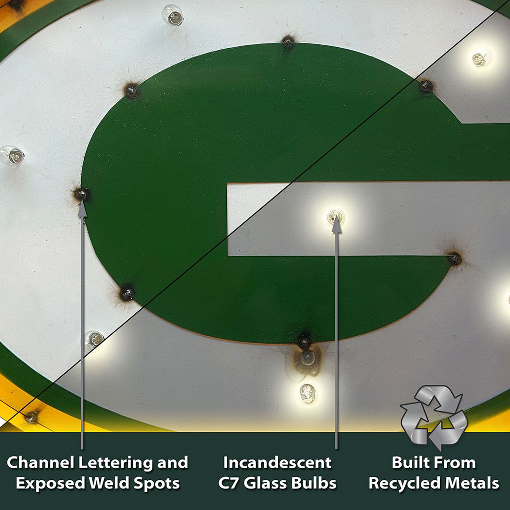 This Imperial sign features stunning graphics and is made from recycled metal. Light up your home or fan-cave with your 30″ Team Branded Logo Lighted Recycled Metal Sign. Suitable for indoor or outdoor use and includes light strands with clear, incandescent C7 glass bulbs. An authentic one-of-a-kind piece. The sign features channel logo and exposed weld spots that give a unique, retro look to any space.