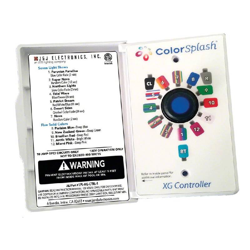 The Halco J&J LPL-XG-CTRL-1 ColorSplash XG Controller provides complete control of ColorSplash LXG Series pool and spa lamps, XG Series Pool and Spa Fixtures, and Fountain LED Light Fixtures. Control your ColorSplash LED lighting from the palm of your hand, when used with your Bluetooth enabled smart device. Can also be operated manually as a push-button station.