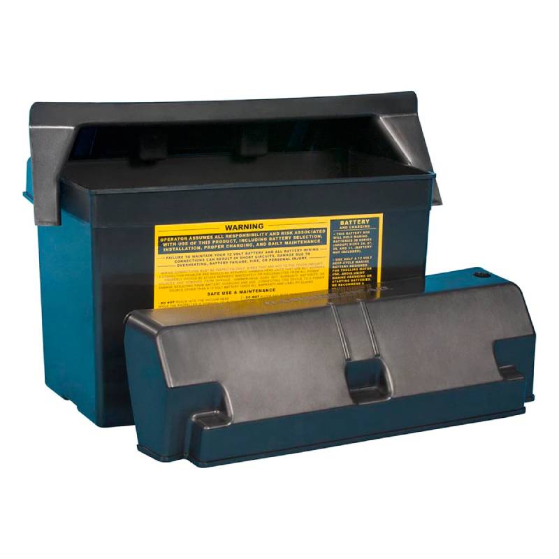 The HammerHead Battery Box replacement has been redesigned for easier battery access. This redesign features an exclusive 3-piece design that includes a 2-piece lid for easier battery access. Simply lift the font panel out of the way to access, maintain, or charge your marine battery while it’s still on the cart.