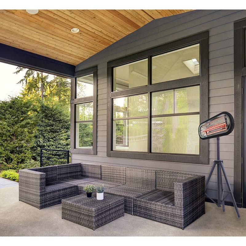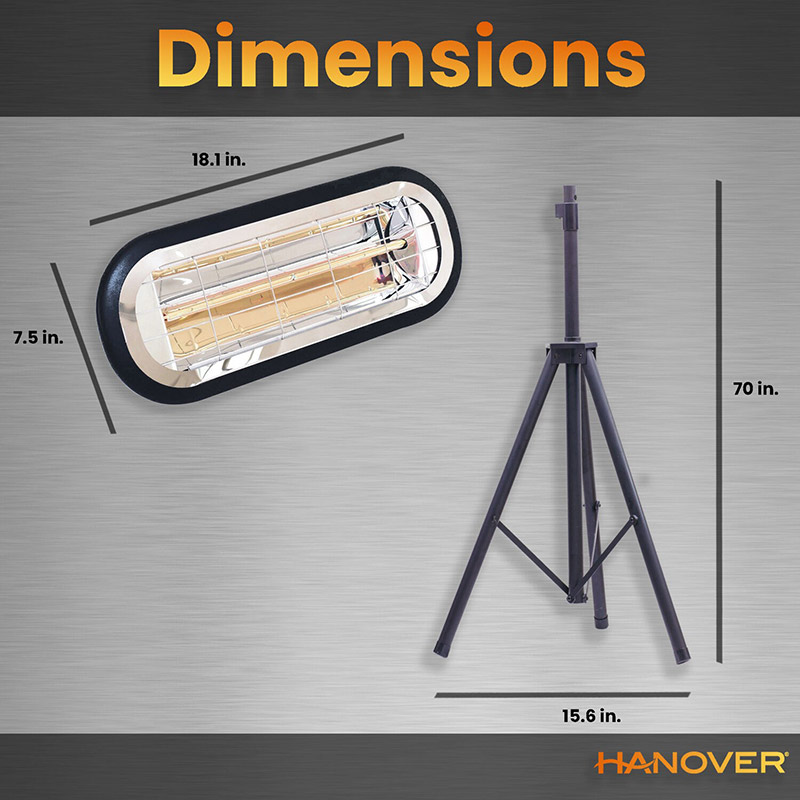 When choosing an outdoor heating system or garage heater, consider Hanover’s line of electric infrared heaters. The Hanover halogen infrared heat lamp is highly effective for hanging from the ceiling or mounting to a wall. Use for your patio, porch, balcony, garage, workshop, and more! The heater features two heat settings operated by a handy remote control, conveniently included with the heater. Easy to assemble, this model can be mounted to a wall, hung from the ceiling, or mounted onto the included tripod for seamless integration into your outdoor entertainment space. Similar to sunshine, infrared heat is a radiant heat that warms a person or an object directly rather than heating the air in-between. Infrared heat can be felt instantly as soon as you turn it on – no waiting for it to warm up. In addition, an outdoor infrared heater saves energy by using less power to create the same amount of heat as traditional gas heaters, and there is no smoke or fumes. Extend the use of your outdoor living space with a Hanover mountable infrared heater.