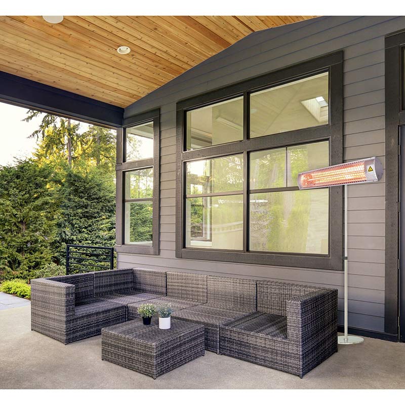 When choosing an outdoor heating system or garage heater, consider Hanover’s line of electric infrared heaters. Hanover’s 26.5-inch modern electric infrared heater is perfect for your patio, porch, balcony, garage, workshop, and more! The heater features two heat settings operated by a handy remote control, conveniently included with the heater. Easy to assemble, this model can be mounted to a wall, hung from the ceiling, or mounted to the included stainless steel stand for seamless integration into your outdoor entertainment space. Similar to sunshine, infrared heat is a radiant heat that warms a person or an object directly rather than heating the air in-between. The halogen infrared heater is filled with halogen gas and has a high element temperature for optimal heat output. Halogen infrared heat is direct and highly effective for areas where installation needs to be a bit further away. Stay comfortable with Hanover’s electric outdoor heaters!