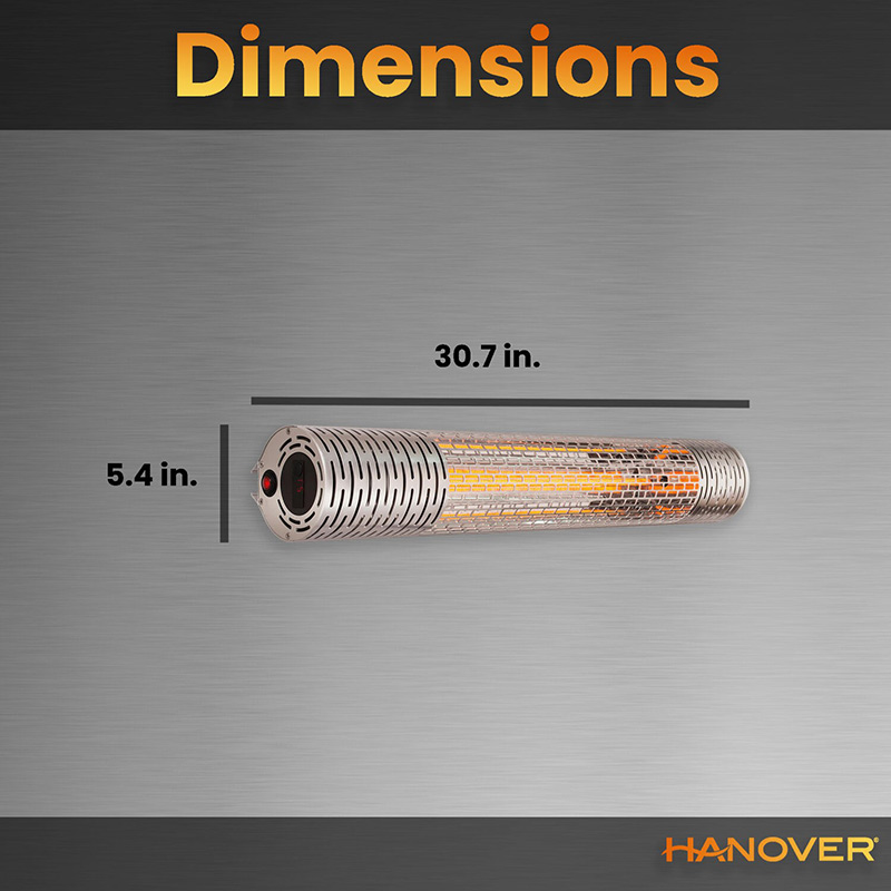 When choosing an outdoor heating system or garage heater, consider Hanover’s line of electric infrared heaters. Hanover’s 30.7-inch wide carbon infrared heat lamp is the ideal choice for hanging from the ceiling or mounting to a wall. Use for your patio, porch, balcony, garage, workshop, and more! Similar to sunshine, infrared heat is a radiant heat that warms a person or an object directly, rather than heating the air in-between. Carbon infrared heat is a soft radiant heat that warms the skin efficiently. Infrared heat can be felt instantly as soon as you turn it on – no waiting for it to warm up. In addition, an outdoor infrared heater saves energy by using less power to create the same amount of heat as traditional gas heaters and there is no smoke or fumes. Extend the use of your outdoor living space with a Hanover mountable infrared heater.