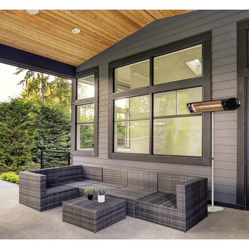 When choosing an outdoor heating system or garage heater, consider Hanover’s line of electric infrared heaters. Hanover’s 35.4-inch wide carbon infrared heat lamp includes a sturdy stainless steel pole stand with a weighted base. Use for your patio, porch, balcony, garage, workshop, and more! The stand is height adjustable from 45 to 80 inches and the heat lamp features three heat settings operated by a handy remote control. Similar to sunshine, infrared heat is a radiant heat that warms a person or an object directly, rather than heating the air in-between. Carbon infrared heat is a soft radiant heat that warms the skin efficiently. Infrared heat can be felt instantly as soon as you turn it on – no waiting for it to warm up. In addition, an outdoor infrared heater saves energy by using less power to create the same amount of heat as traditional gas heaters and there is no smoke or fumes. Extend the use of your outdoor living space with a Hanover infrared stand heater.