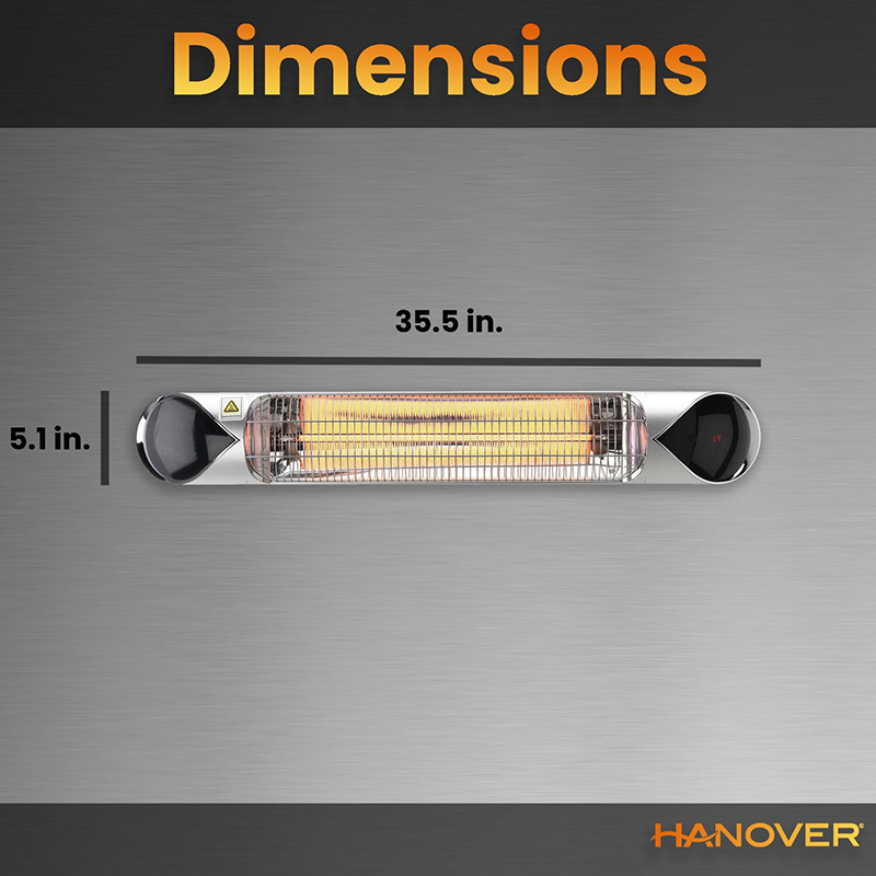 When choosing an outdoor heating system or garage heater, consider Hanover’s line of electric infrared heaters. Hanover’s 35.4-inch wide carbon infrared heat lamp is the ideal choice for hanging from the ceiling or mounting to a wall. Use for your patio, porch, balcony, garage, workshop, and more! It features three heat settings operated by a handy remote control. Similar to sunshine, infrared heat is a radiant heat that warms a person or an object directly, rather than heating the air in-between. Carbon infrared heat is a soft radiant heat that warms the skin efficiently. Infrared heat can be felt instantly as soon as you turn it on – no waiting for it to warm up. In addition, an outdoor infrared heater saves energy by using less power to create the same amount of heat as traditional gas heaters and there is no smoke or fumes. Extend the use of your outdoor living space with a Hanover mountable infrared heater.