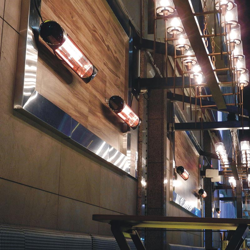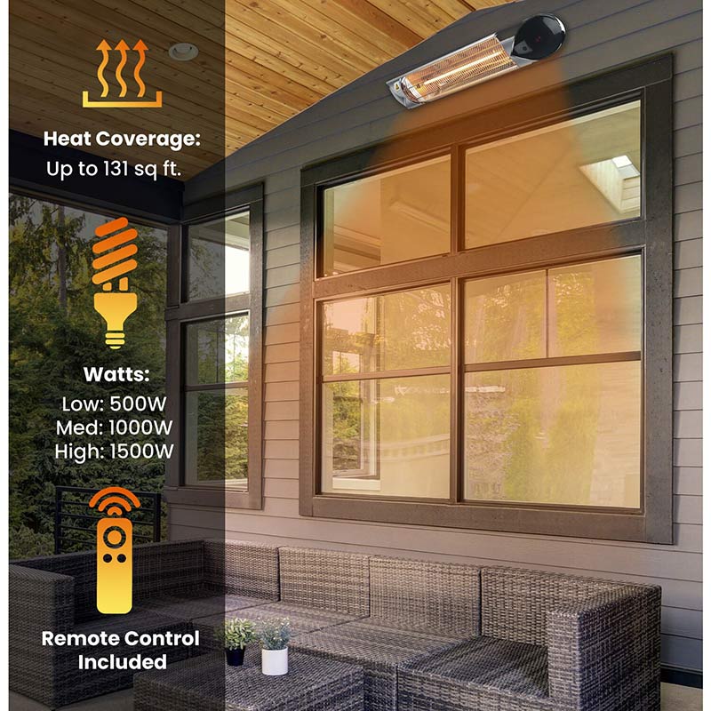 - 35.4-in. wide electric carbon infrared heat lamp for ceiling hanging or wall mounting