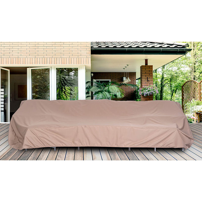 Protect your outdoor furniture from the elements with a Hanover furniture cover. This model is designed for 4-6 piece sofa seating sets. The cover is constructed of water- and UV-resistant polyester, keeping your sofa set looking vibrant and dry. The perfect way to enjoy spring outside, between the frequent April showers, the cover’s simple yet solid construction makes for easy application and removal, giving you more time enjoying your outdoor setting even after it rains. This durable cover features an elastic opening that cinches at the bottom for the most optimal coverage, ensuring no snow slips in during the winter months. The tan color is an inconspicuous natural color to compliment your lawn, patio, or wood decking. Rest easy knowing the Hanover furniture cover will protect your outdoor furniture, helping it last for years to come.