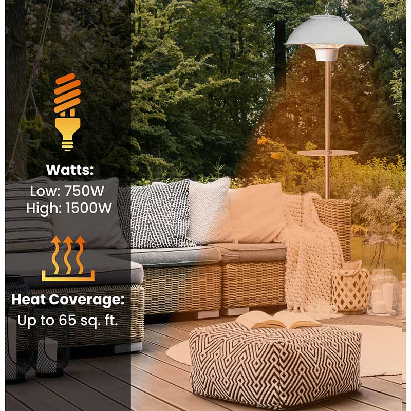 - Electric carbon infrared heat lamp with built-in table stand to set drinks on