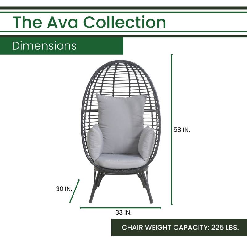 Add stylish seating indoors and out with the Ava egg chair from Hanover. Wherever you place it, you can relax into the plush cushions, supported by a sturdy, yet stylish steel frame. The frame is powder-coated to resist rust and corrosion, and the cushions dry quickly and maintain their shape, which makes this chair ideal for outdoor use in your yard or patio. While this high-quality chair was built for life outdoors, it works equally well indoors and can be the stylish accent that your living room needs.