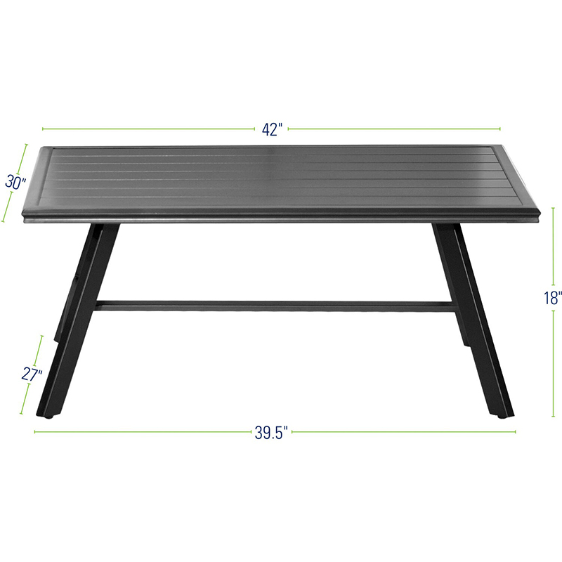 - Aluminum slat tabletop prevents excess water build-up and dry quickly