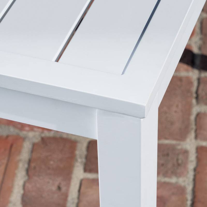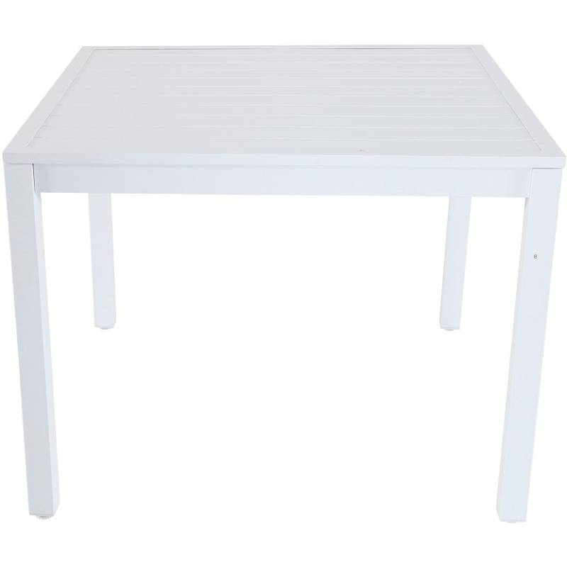 Extend your sense of style to the outdoors with this sleek outdoor dining table from the Del Mar collection. Perfect for small patios and decks, this all-weather dining table provides the ideal place to dine outdoors without taking up too much space. The table flaunts clean lines and a smooth gray finish. This modern square table has a slat tabletop and is constructed with heavy-duty aluminum frames that naturally resist rust. Enjoy bringing family meals outdoors with this piece from the Del Mar collection.