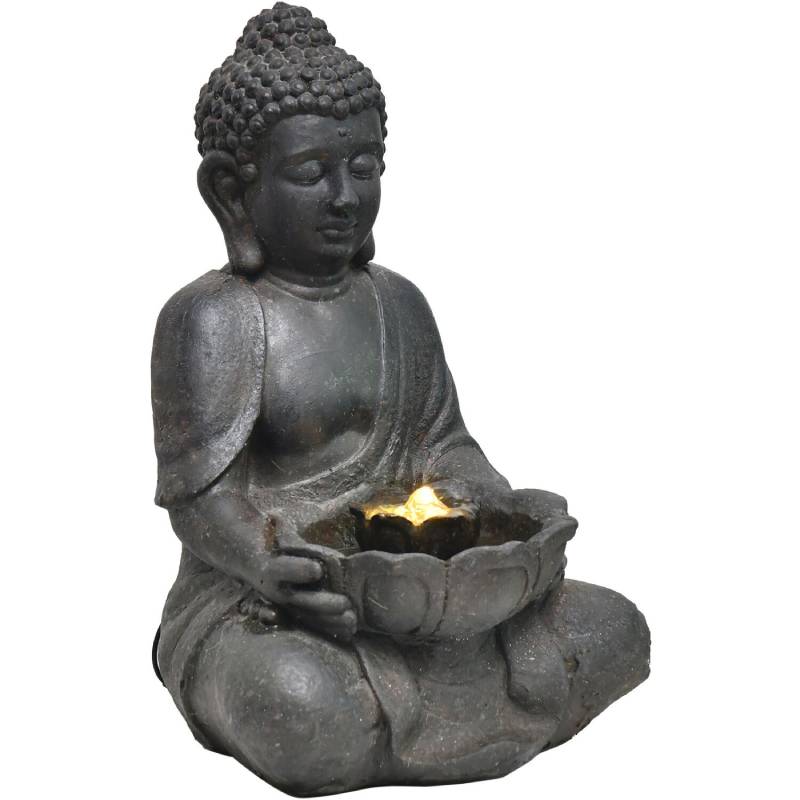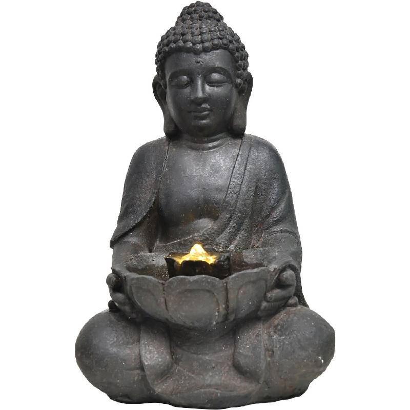 - Buddha statue water fountain features a tranquil lotus-flower basin with one 6-piece LED light ring in warm white for a gentle glow