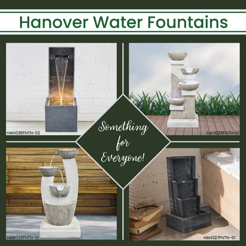 Create the ultimate Zen oasis with a decorative water fountain from Hanover. Designed for both indoor and outdoor use, place one in your sunroom, garden, courtyard, front yard, or backyard. Water cascades from our vertical wall fountain into a lighted pool with warm white LED lights for a gentle glow, especially nice in the evening. Enjoy your morning coffee or sip your tea to the soothing sound of cascading water. This waterfall fountain will be the ideal centerpiece for your beautiful home to ease your stress so you can relax.
