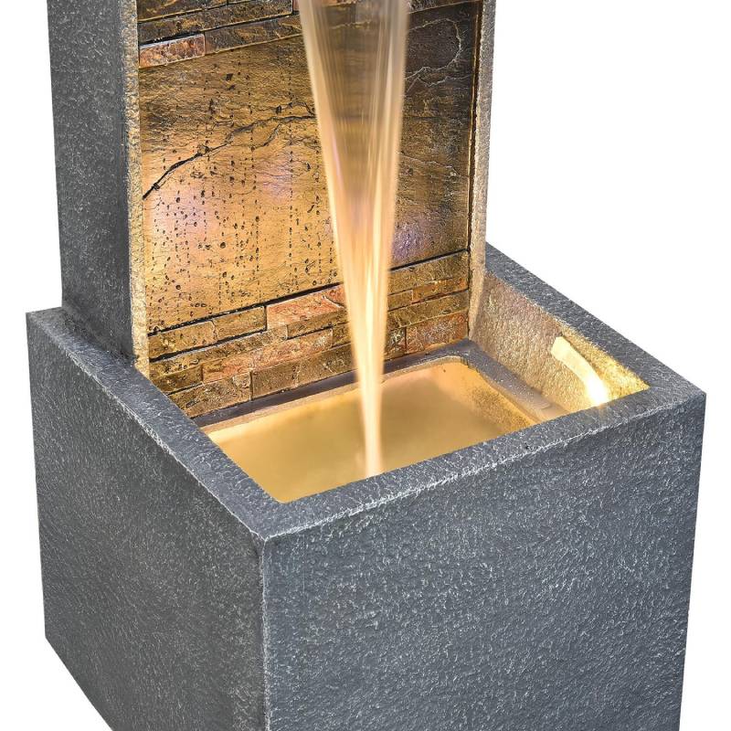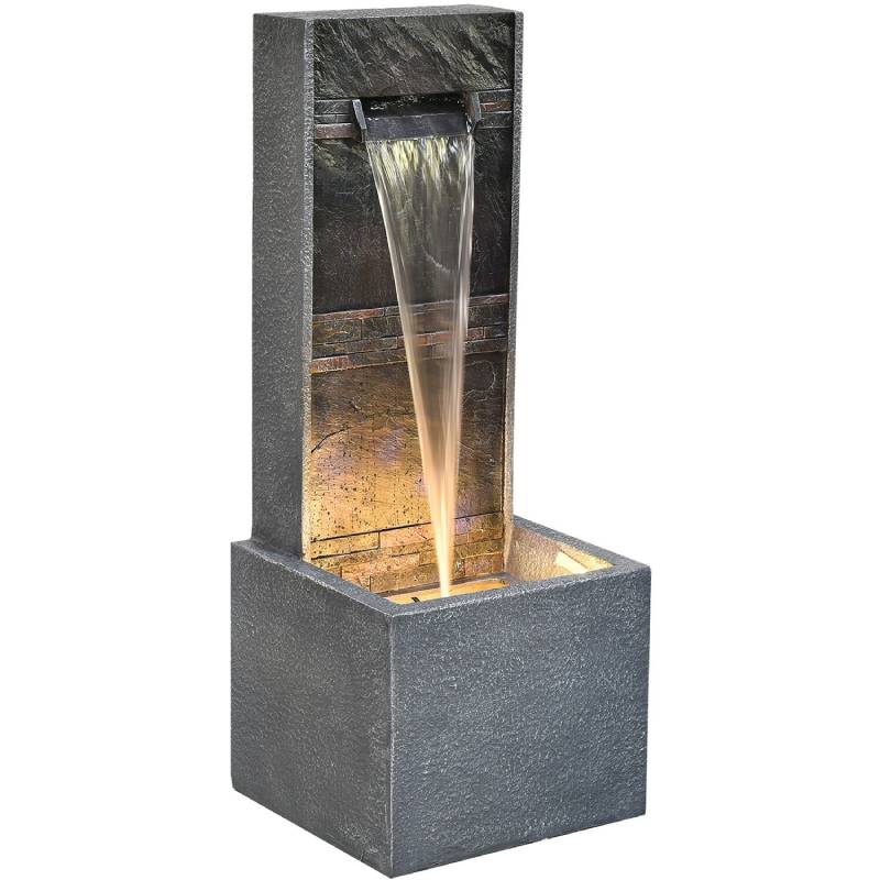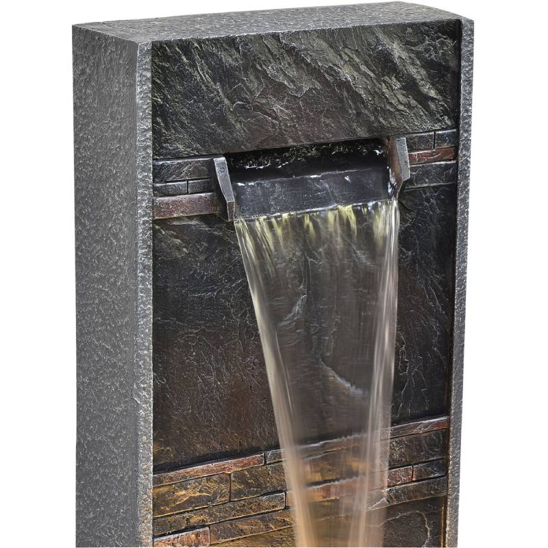 - This vertical cascade garden fountain features soft warm white lights to be the perfect addition to your home’s outdoor oasis, especially in the evening.