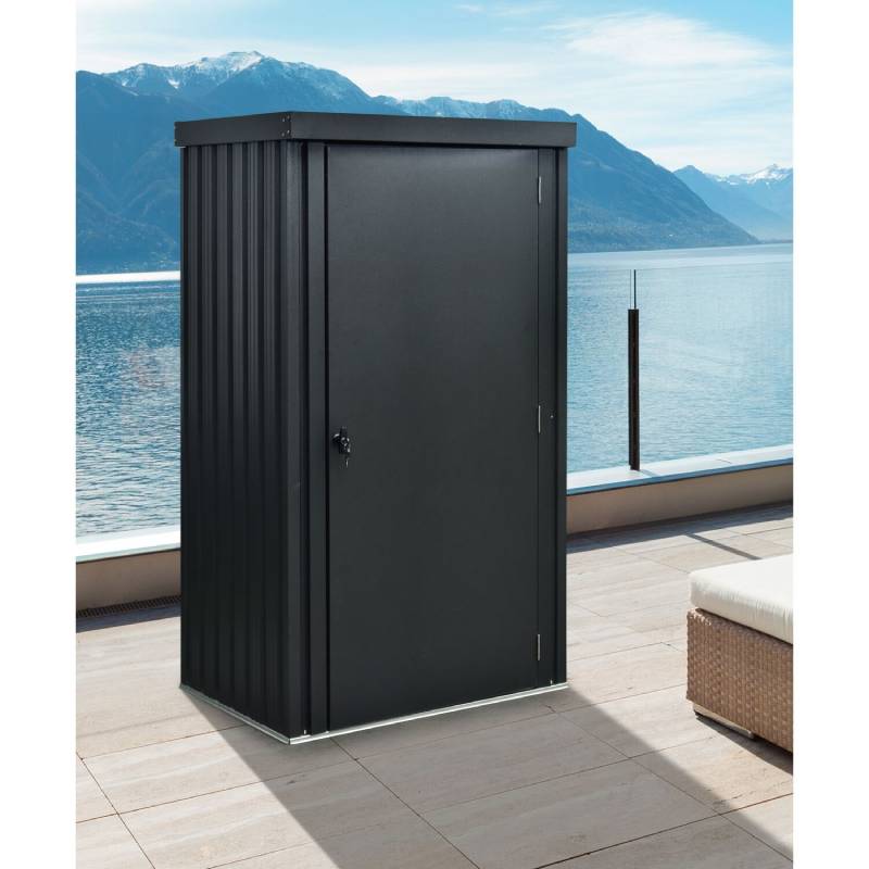 - Designed to fit a variety of outdoor storage items, this unit is the perfect fit for any backyard, patio, or lawn. The shed comes equipped with a lock and key to keep all your possessions safe and secure.