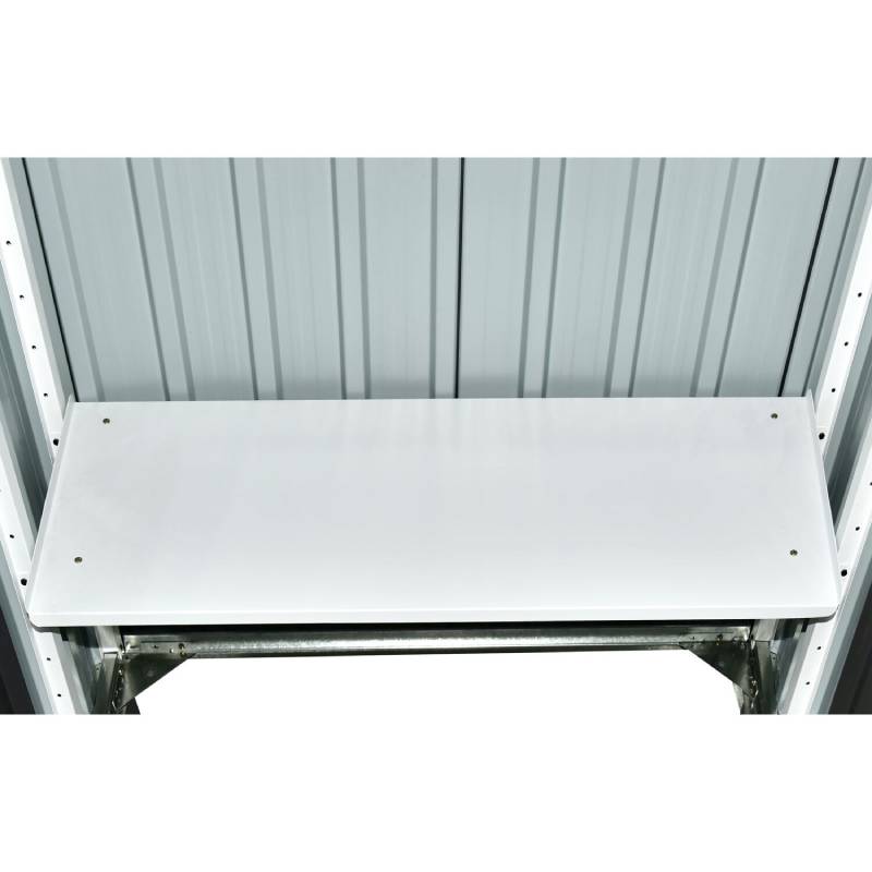 The Hanover HANPATSFSHD-GRY is a Galvanized Steel Patio Storage Shed that has a dimension of 2.6′ x 3.2′ x 5.9′. Store and protect your garden supplies in Hanover’s durable, patio storage shed that comes complete with a floor and shelving. With 25-cubic feet of storage space, this strong compact shed is constructed with powder-coated, galvanized steel walls that are resistant to rust, corrosion, and UV rays.