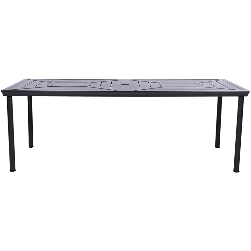 - MODERN SLEEK DESIGN: The Montclair Dining Collection by Hanover features stylish and chic stamped back chairs and matching stamped top table. This set includes 8 cushioned swivel rocker chairs and 84″x42″ stamped top dining table, 11′ umbrella, and umbrella base(optional). Perfect set to have an intimate meal with your partner or entertain a part of 8 on your patio, yard, deck, or porch.