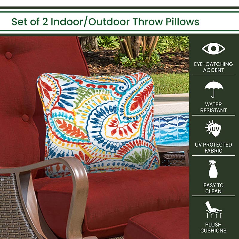 - BEAUTIFUL DECOR: The Throw Pillows by Hanover are designed to make a statement. These pillows are sure to add a beautiful pop of color onto any of your indoor or outdoor furniture pieces. The lovely paisley design has rich blend of unique colors for a wonderful addition to your living space. Perfect addition to your patio, yard, deck, porch, living room, or bedroom.