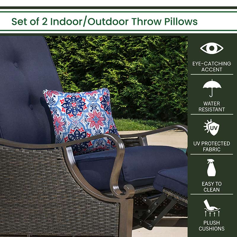 - BEAUTIFUL DECOR: The Medallion Throw Pillows by Hanover are designed to make a statement. These pillows are sure to add a beautiful pop of color onto any of your indoor or outdoor furniture pieces. The rich blend of reds and navy blues will sure be a wonderful addition to your living space. Perfect addition to your patio, yard, deck, porch, living room, or bedroom.