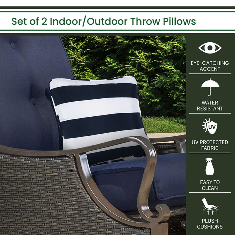 - BEAUTIFUL DECOR: The Throw Pillows by Hanover are designed to make a statement. These pillows are sure to add a beautiful pop of color onto any of your indoor or outdoor furniture pieces. The nautical stripe design with rich navy and white color is a wonderful addition to your living space. Perfect addition to your patio, yard, deck, porch, living room, or bedroom.