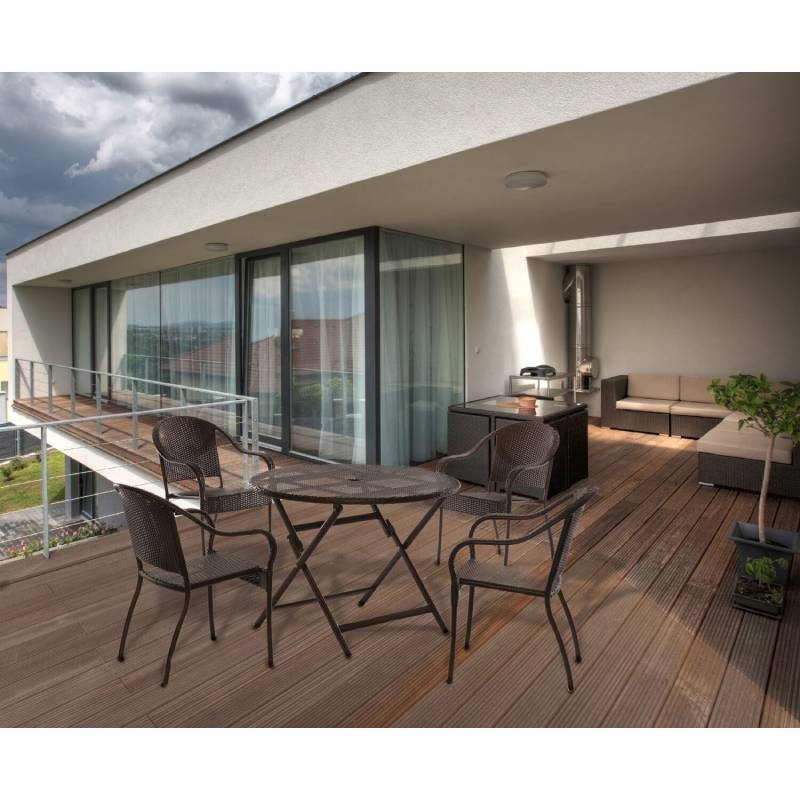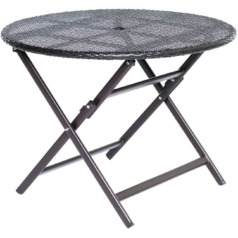 Create a pop-up dining room outdoors with the 40 in. dining table from the Orleans Collection. Perfect for smaller spaces, this elegant and compact 40 in. round table is the ideal spot for your friends and family to gather around. The table folds down into a thin profile, offering a convenient storage solution whenever you need it. All-weather resin is hand-woven across the table-top and supported by sturdy aluminum frames. This table will be the centerpiece to your outdoor dining experiences for years to come.