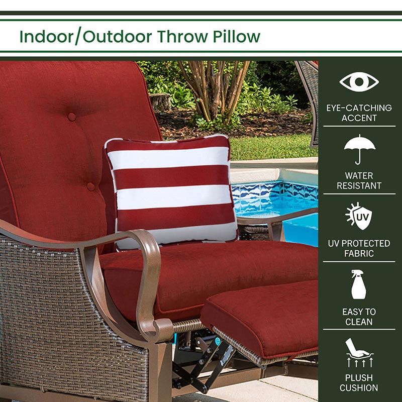- BEAUTIFUL DECOR: The Throw Pillows by Hanover are designed to make a statement. These pillows are sure to add a beautiful pop of color onto any of your indoor or outdoor furniture pieces. The nautical stripe design with rich red and white color is a wonderful addition to your living space. Perfect addition to your patio, yard, deck, porch, living room, or bedroom.