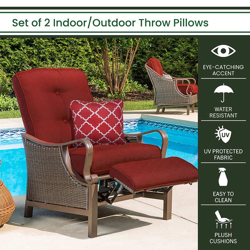 - BEAUTIFUL DECOR: The Throw Pillows by Hanover are designed to make a statement. These pillows are sure to add a beautiful pop of color onto any of your indoor or outdoor furniture pieces. The classic lattice design with a blend of red and white is a wonderful addition to your living space. Perfect addition to your patio, yard, deck, porch, living room, or bedroom.