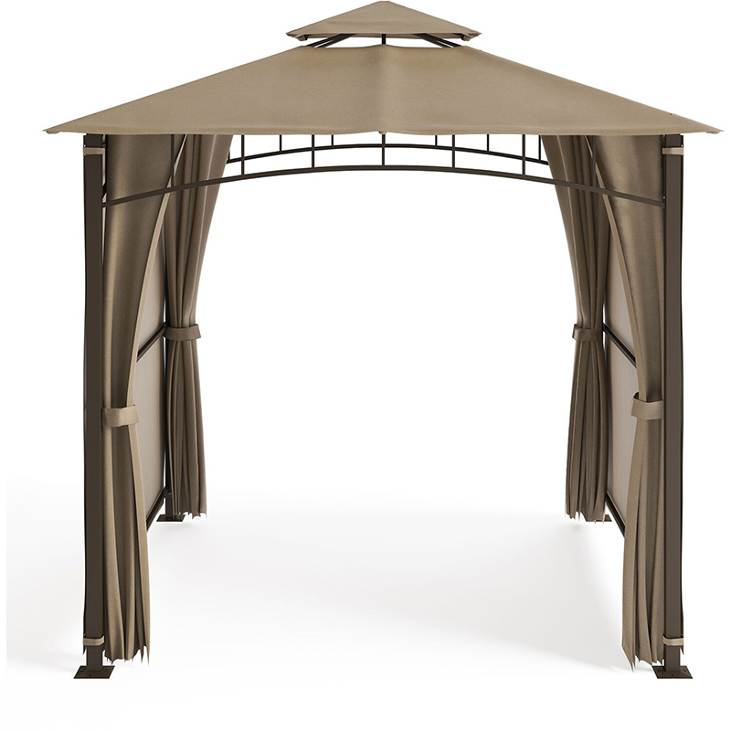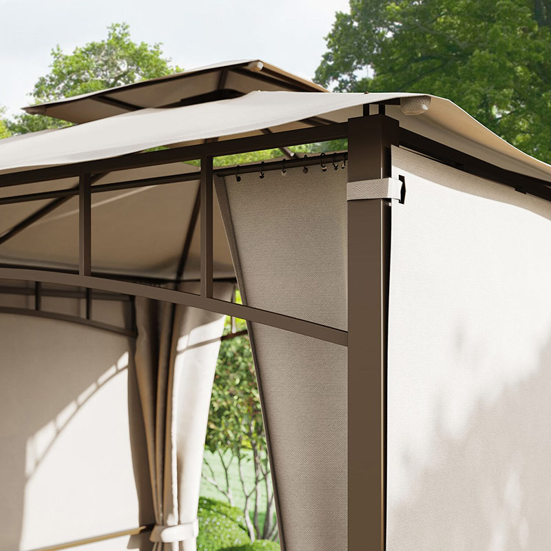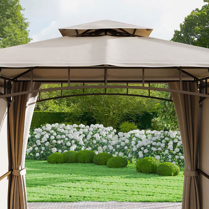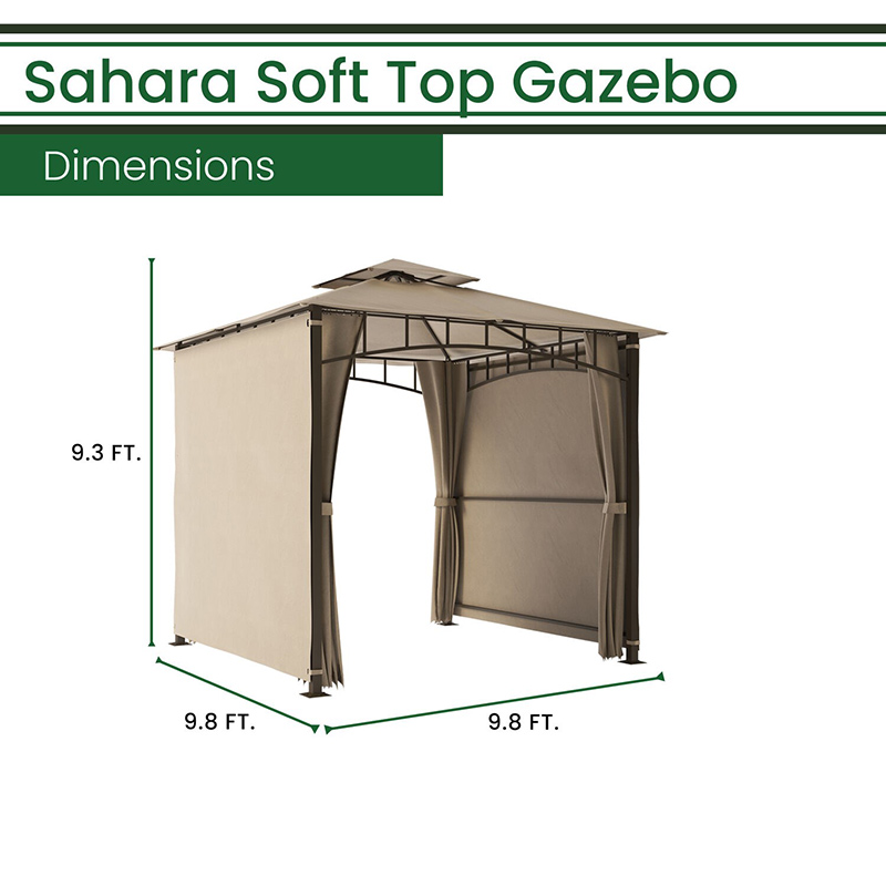 - CLASSIC DESIGN: The Sahara Outdoor Gazebo was designed to fit any backyard, deck, roof top, or deck. With its warm neutral tan and brown tones, this canopy will match any outdoor space. Comes equipped with curtains to keep out any pesky bugs and provide extra shade. Added bonus of extra pop out roof for additional coverage.
