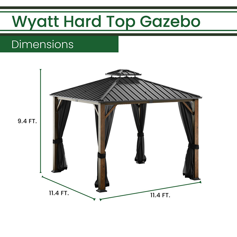 Hanover Wyatt Hard Top Gazebo with Curtains Features: