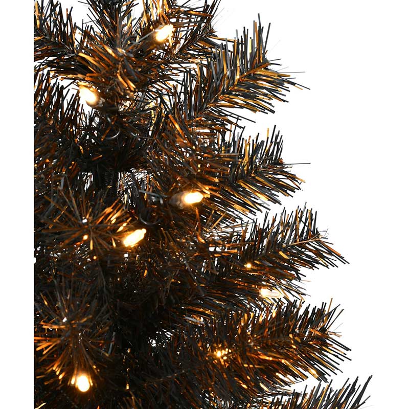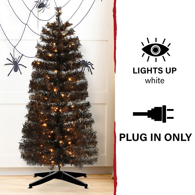 - NOT JUST FOR CHRISTMAS! Black tinsel puts a playful twist on your Halloween decorating. Our 4-ft. tree will delight your trick or treaters with frightfully fun whimsy!