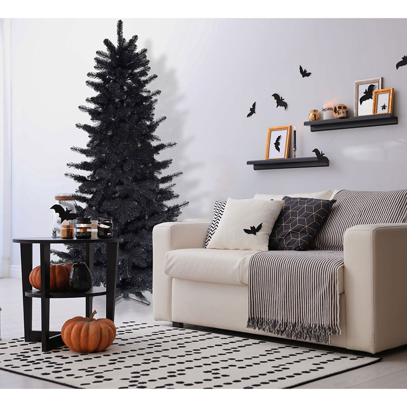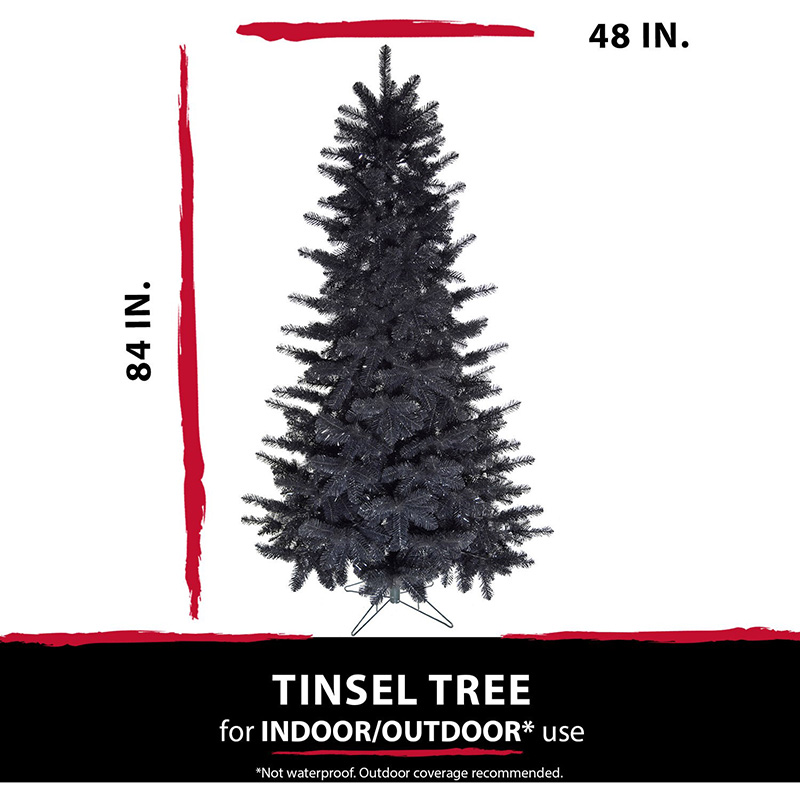- NOT JUST FOR CHRISTMAS! Shiny black tinsel puts a playful twist on your Halloween decorating. Our 7-ft. tree will delight your trick or treaters with frightfully fun whimsy!