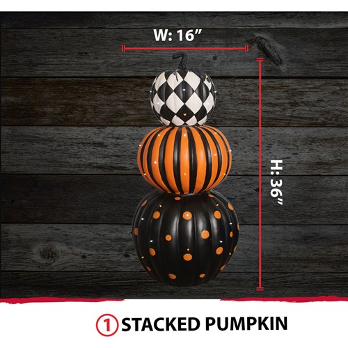 Haunted Hill Farm FFRS036-PMP1-BLK3 36″ Three Stacked Pumpkins LED Lit