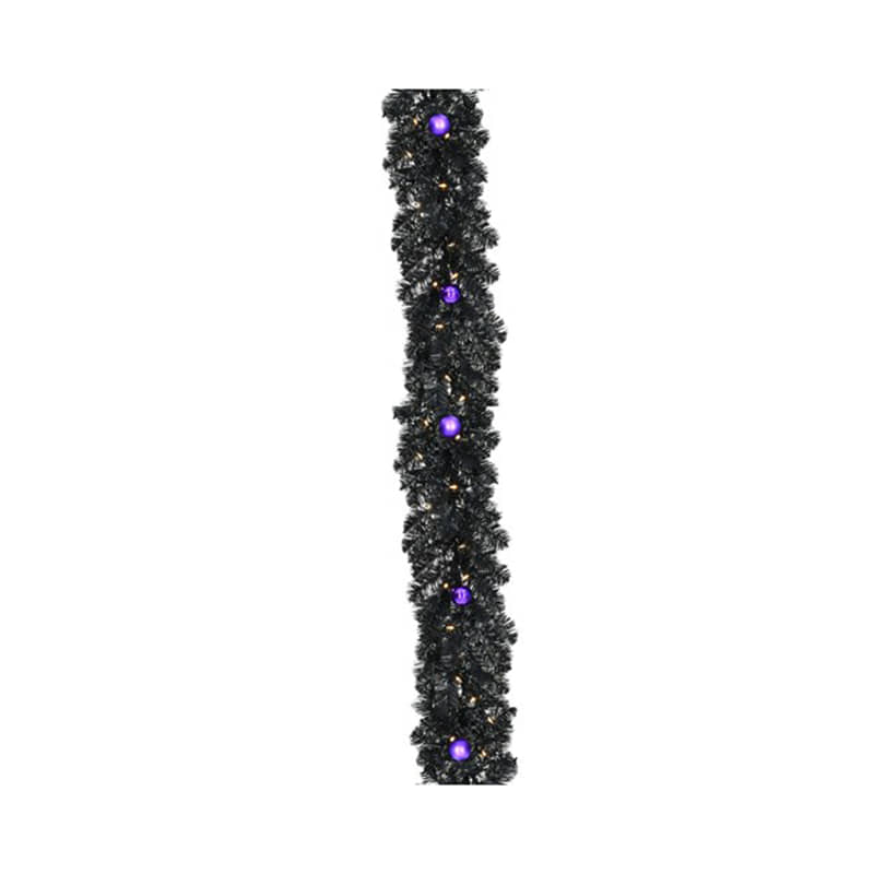 - 6-ft. black tinsel garland from Haunted Hill Farm