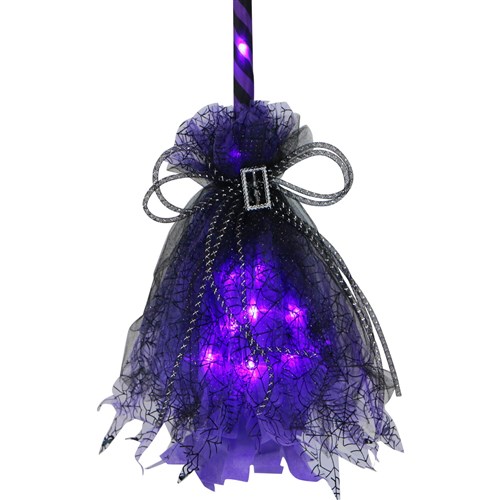 - 3-ft. battery-operated witch’s broomstick with purple LED lights
