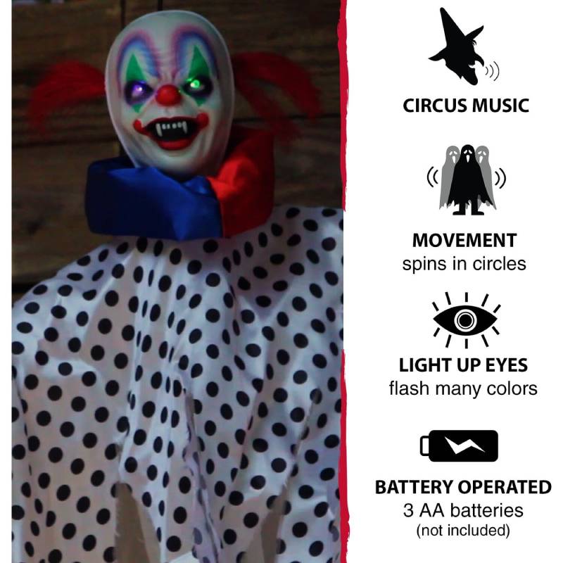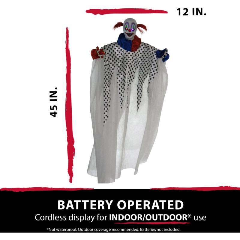 - 45-in. animatronic ghost clown for indoor and covered outdoor display